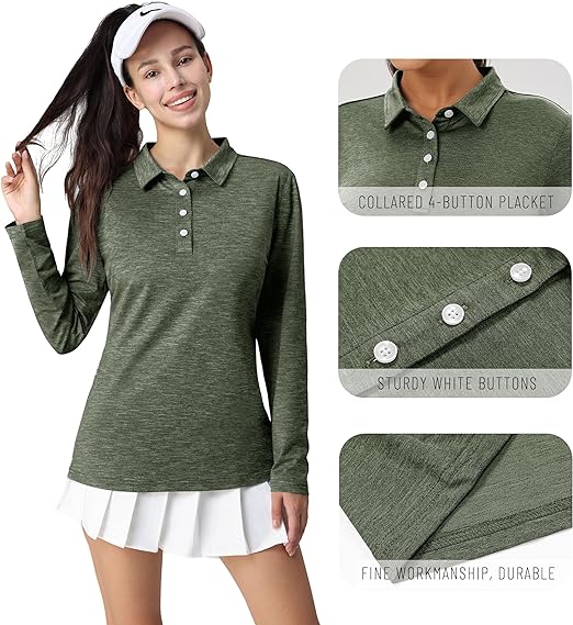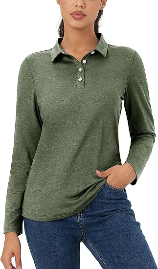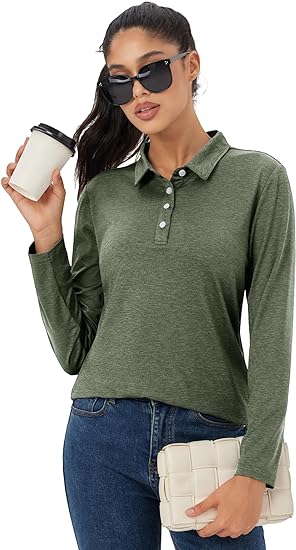 - Classic Polo Style: 4 Button placket with collar, regular fit, simple and classic. This women¡¯s long sleeve polo is designed with fashion and function in mind, suitable for any occasion.